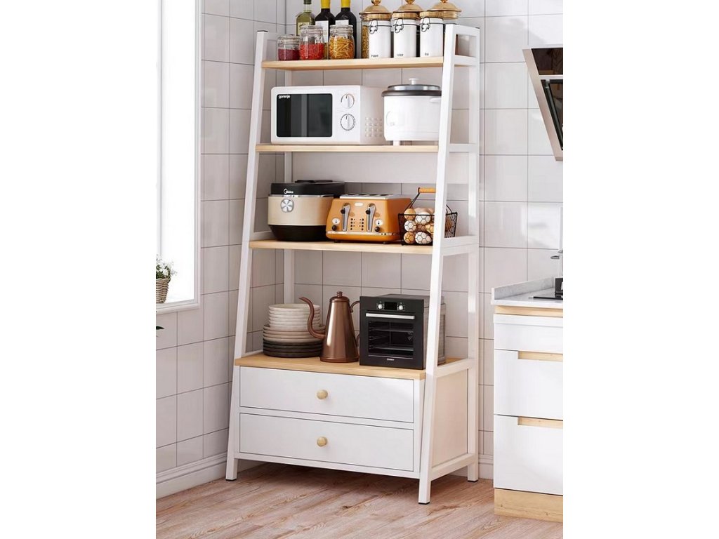 Praktický regál se dvěma šuplíky bude určitě vhodným doplňkem do vašeho domova. Police a šuplíky jsou vyrobeny z MDF desky v barvě buku. Konstrukce regálu z kovu bílé barvy. Dodáváme v demontovaném stavu.Doplňkové parametry
