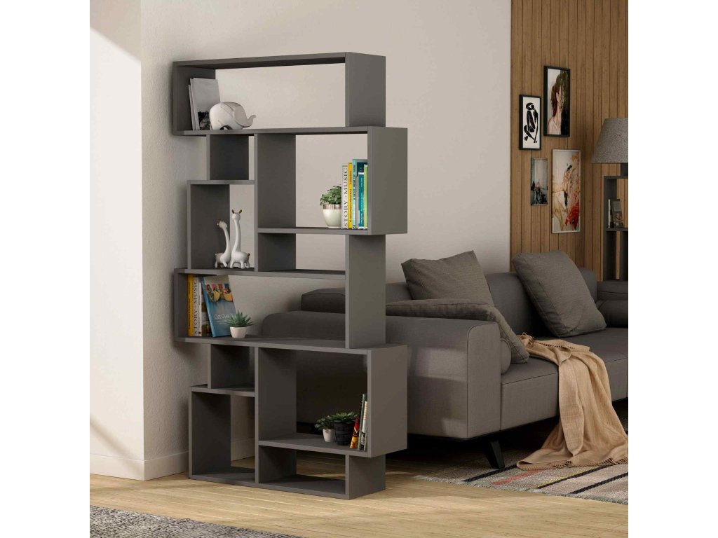 Dejte svému obývacímu pokoji nový rozměr s designovým regálem . Antracitová barva kombinovaná s moderním stylem tohoto nábytku přinese do vašeho domova svěžest a nadčasovou eleganci.