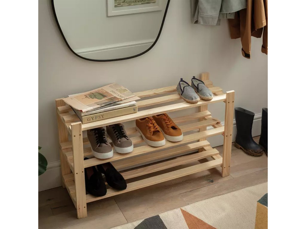 materiál masiv borovice, nelakované provedení tři police prostor pro uložení 9 párů botDoplňkové parametry