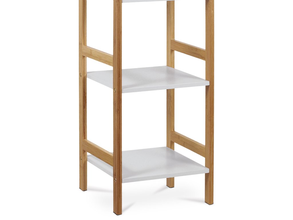 Regál, 4 police, masiv bambus, přírodní odstín, MDF, bílý matný lak, nosn. 12 kg