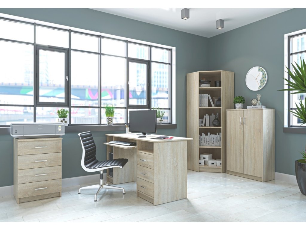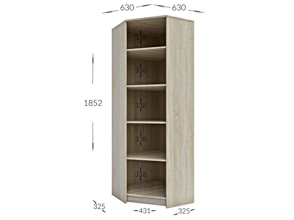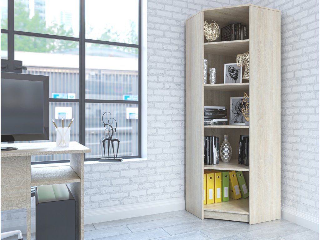 Praktický skříňový rohový regál s policemi vhodný na zakládaní šanonů, knih a jiných pracovních dokumentů. Nábytek je vyroben z kvalitní LTD v barvě dub sonoma. Dodáváme v demontovaném stavu.Doplňkové parametry