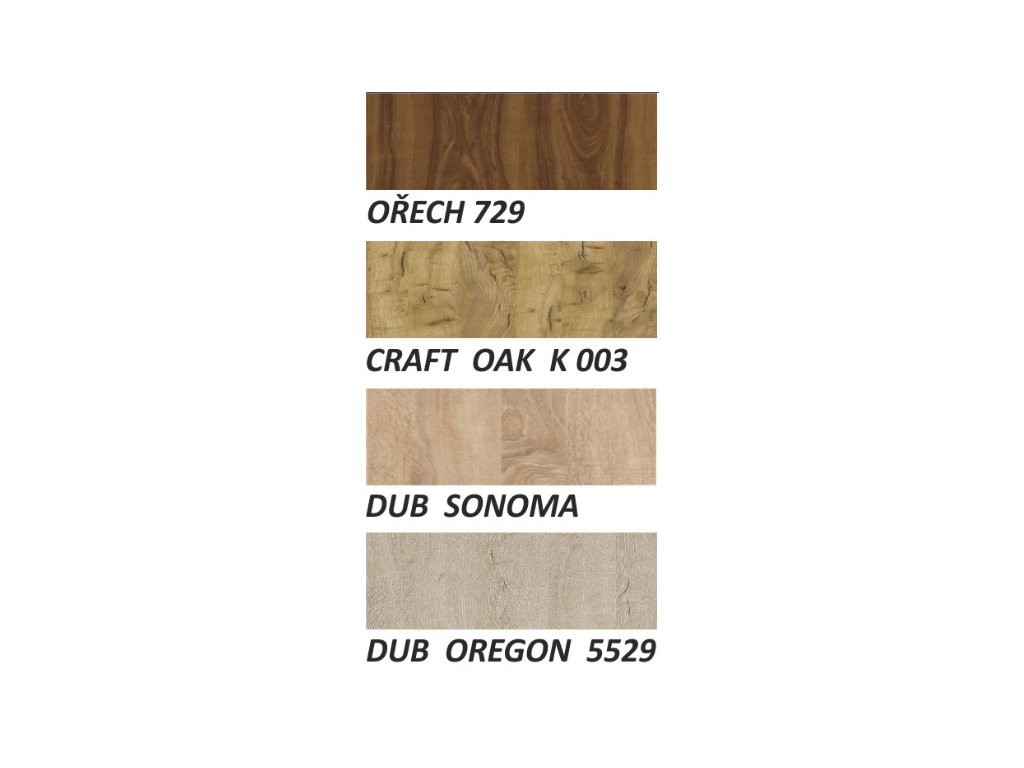 Výběr barev: Craft oak K003, Ořech 729, Dub Sonoma, Dub Oregon 5529, Bílá gravír, Černá gravír
