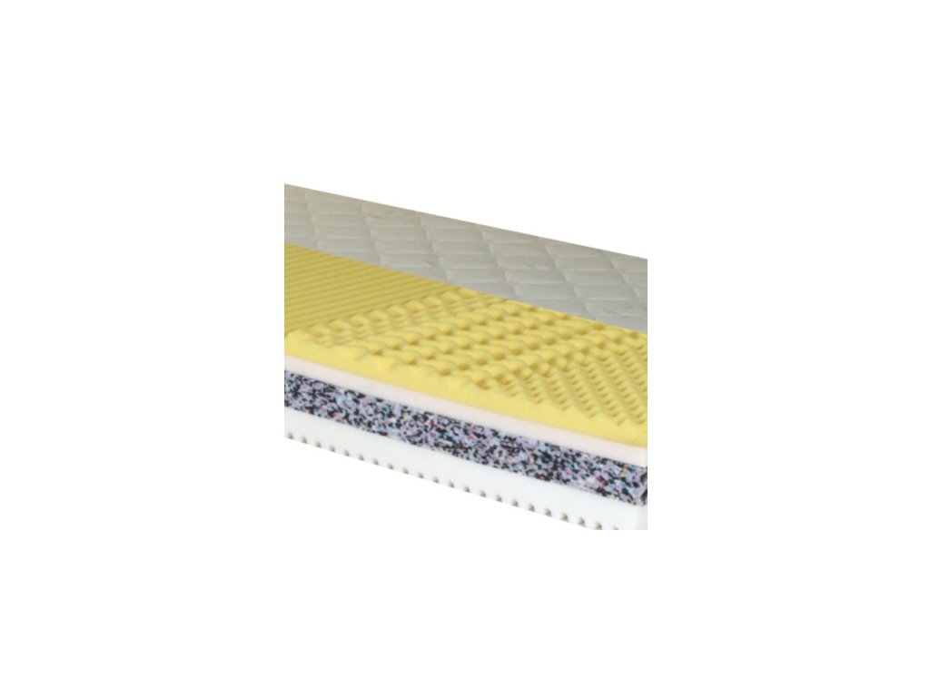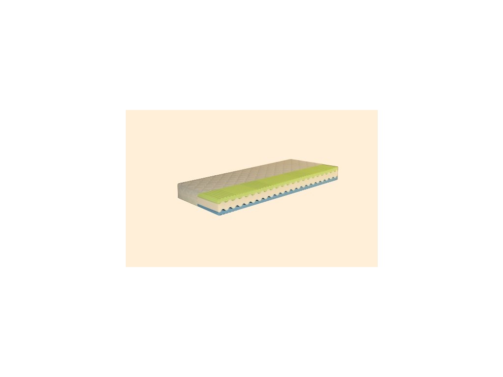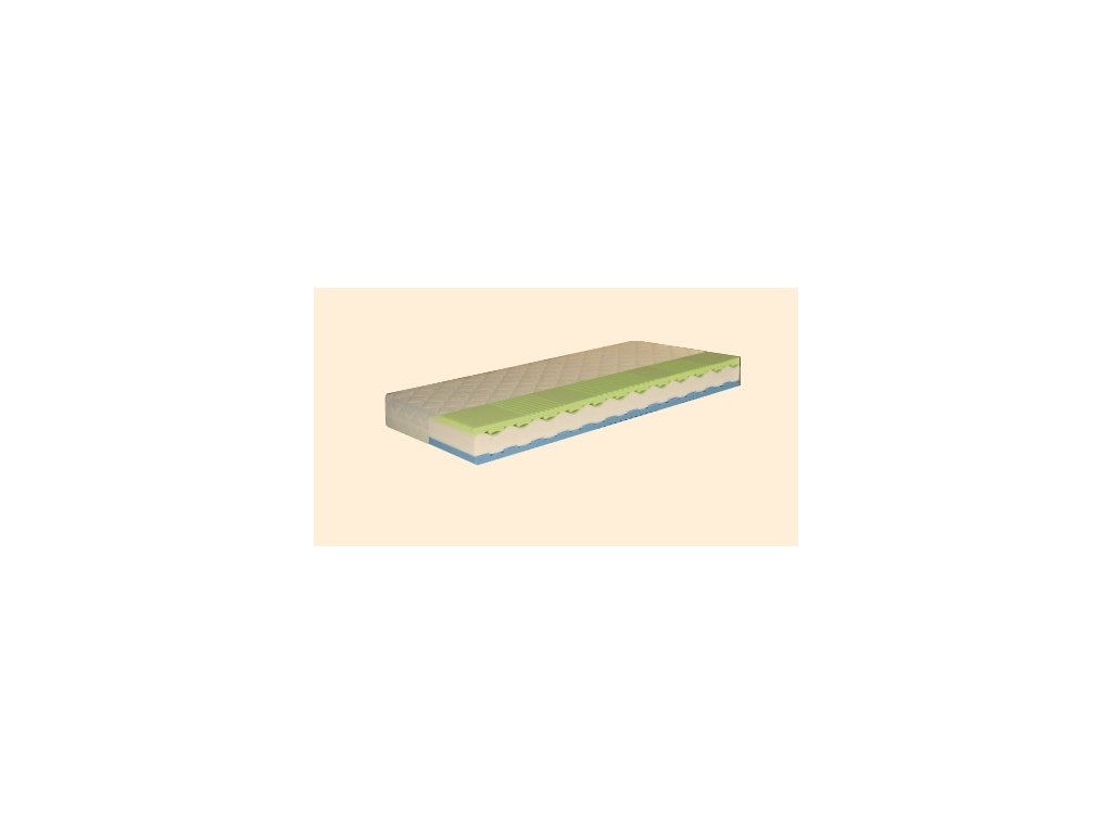 je sendvičová středně tuhá 5-zónová matrace, vyrobená z kvalitních, elastických PUR pěn. Profilovaný průřez dodává matraci pružnost, komfort a vzdušnost. Matrace je oboustranná se dvěma tuhostmi. Je opatřena snímateným potahem pratelným na 60°C. Nosnost do 120 kg. Výška matrace je cca 20 cm.