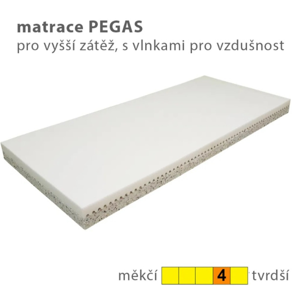 s matrací Pegas -sendvičová matrace, určená pro větší zátěž. Horní část matrace má profilovanou PUR pěnu.