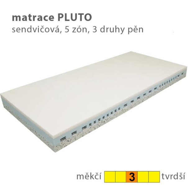 s matrací Pluto - sendvičová matrace, která se skládá ze tří typů PUR pěny.