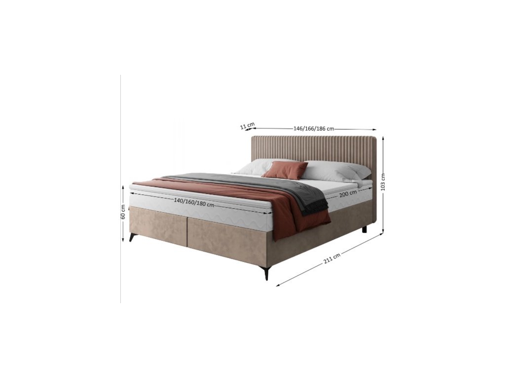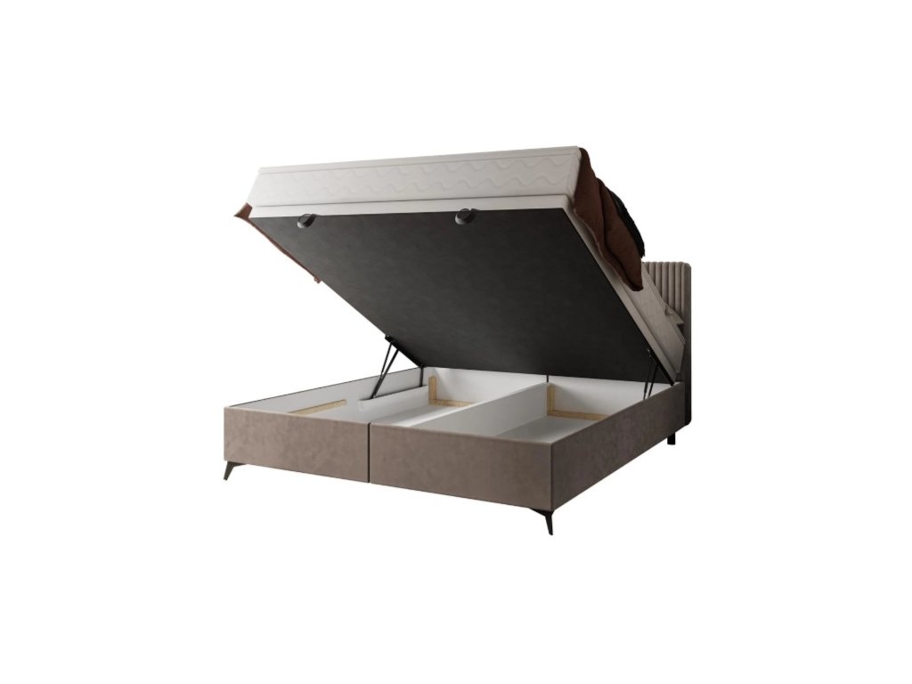 Dokonalá kombinace pohodlí, funkčnosti a stylu to je postel Wave s taštičkovou matrací a topperem. Tato kombinace poskytuje vynikající oporu vašemu tělu a přizpůsobuje se vašemu individuálnímu tvaru a pohybům během spánku. Do úložného prostoru je snadný přístup s pomocí plynových zvedáků. Předností postele je prošívané čelo a černé kovové nohy. Postel je čalouněná v látce Manila 01+Tilia 03.