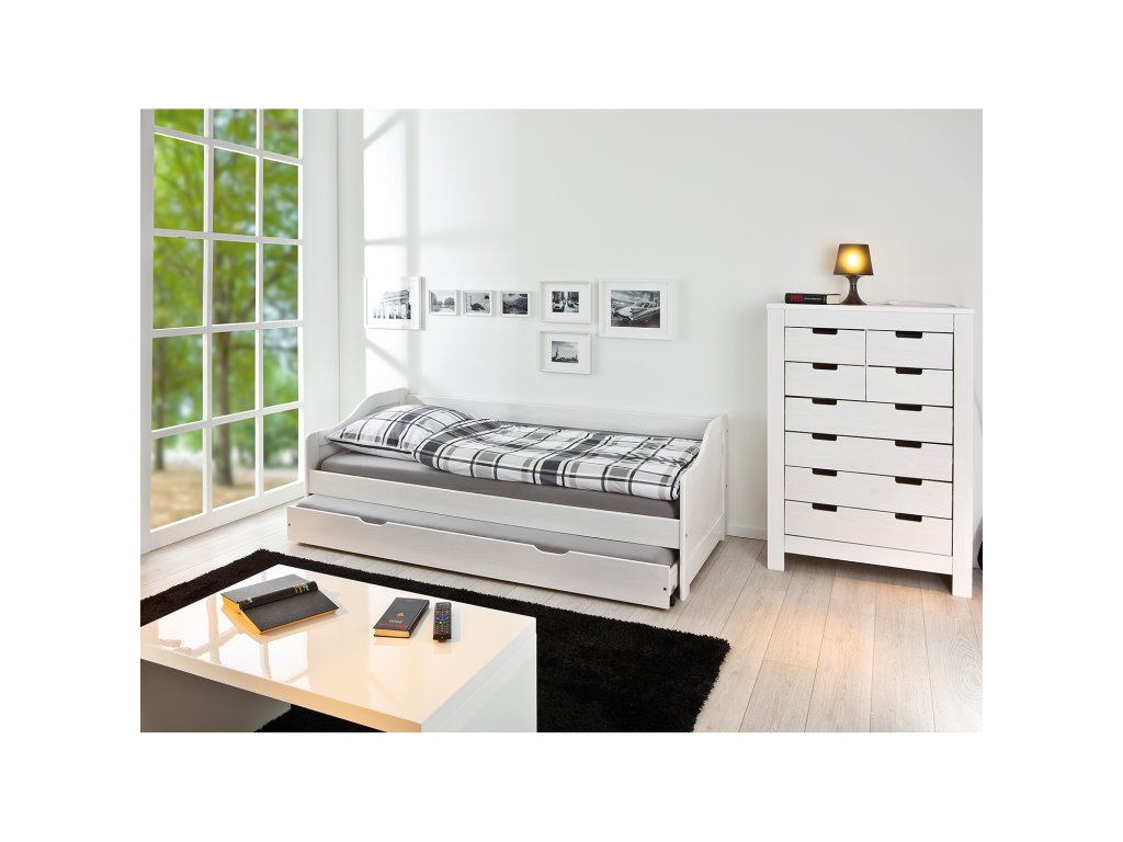 materiál masiv borovice, barevné provedení bílý lak výška sedu postele 37 cm dřevěné laťkové rošty jsou v ceně, matrace nejsou v ceně výsuv možno využít jako úložný prostor nebo jako přistýlku doporučená výška matrace pro přistýlku 10 cm doporučený rozměr matrací 90 × 200 cm Leonie ID20900215Doplňkové parametry