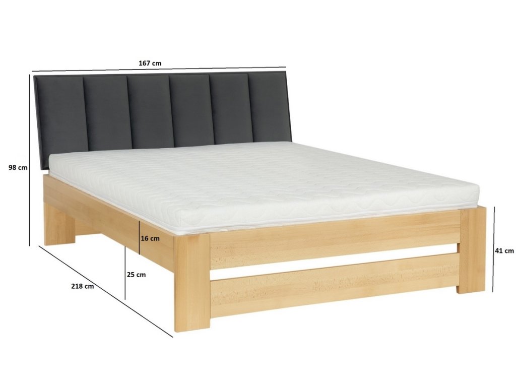 Stylová postel s elegantním čelem. Postel je vyrobena z kvalitního bukového dřeva, které přinese do Vaší domácnosti tu správnou přírodní atmosféru a vůni dřeva. Základní bukové dřevo je bez moření, můžete si však objednat i další moření s 10% příplatkem. Můžete si vybrat i barvu a vzor čela. Postel neobsahuje rošt ani matraci. Vhodný rozměr 160 x 200 cm. Jednotlivé části nábytku tohoto výrobce lze různě kombinovat, čímž docílíte dokonalé harmonie a přitažlivého vzhledu Vašeho domova. Poněvadž má dřevo povrchovou úpravu proti škůdcům a vy budete mít zájem namořit si nábytek sami, napište do poznámek k objednávce - "Bez povrchové úpravy".Doplňkové parametry