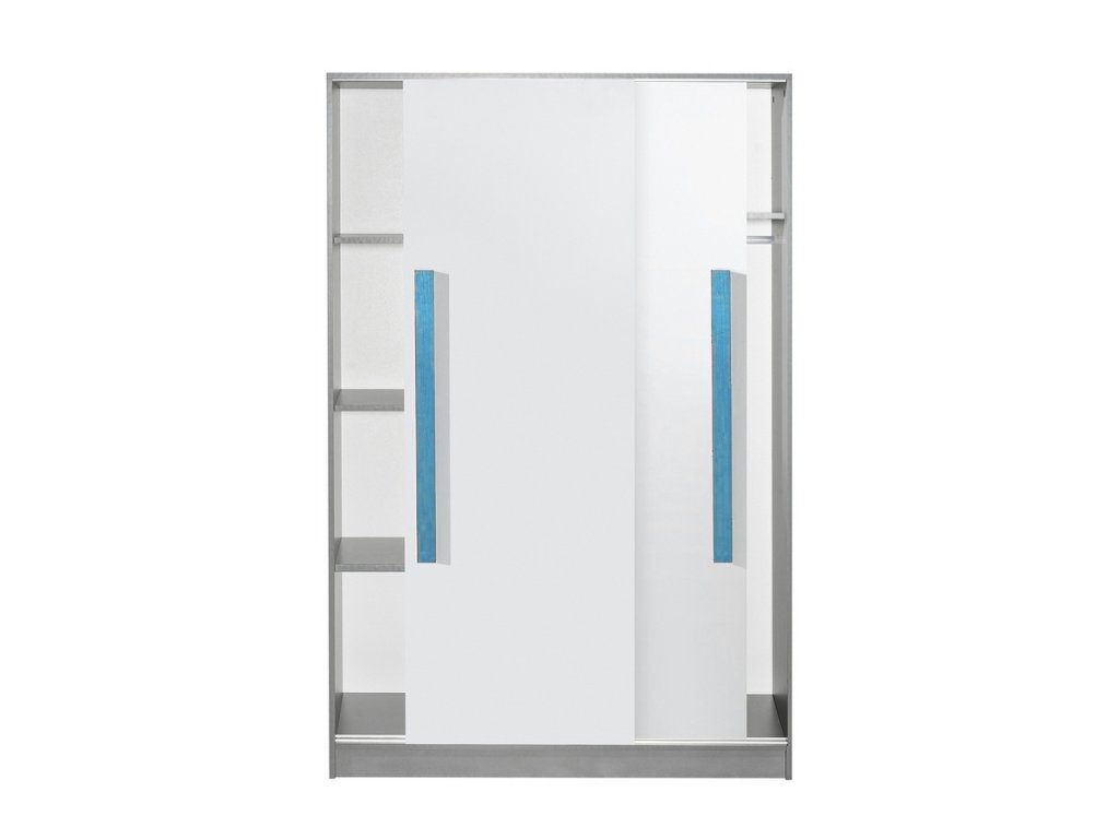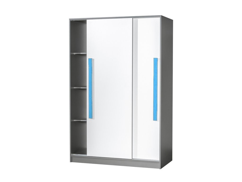 Šatní skříň s posuvnými dveřmi ze sektorové řady GYT, která se vyznačuje netradičním zpracováním barev a originalitou úchytů. Tento styl nábytku zaujme každou mladší generaci. Skříň je vyrobena z kvalitní LTD desky hraněné ABS lištou. Korpus je v barvě šedá antracit, dveře jsou bílé matné. Úchytky jsou v modré barvě. Uvnitř skříně je šatníková tyč a police. Sektorový nábytek GYT má široký výběr prvků, který Vám zaručí sestavit si dětský nebo studentský pokoj, ložnici či kancelář podle svých potřeb, přání a představ. Dodáváme v demontovaném stavu.Doplňkové parametry