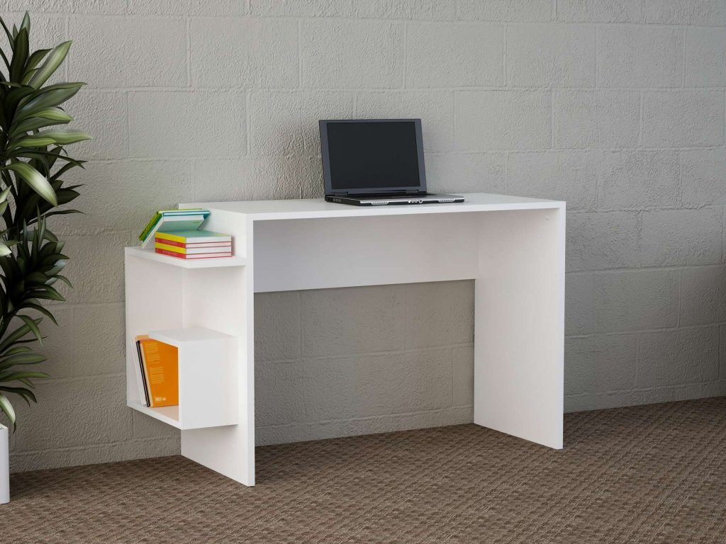 Písací stůl je vyroben z kvalitního LTD materiálu s tloušťkou 18 mm, což zajišťuje jeho pevnost a dlouhou životnost. Elegantní bílý design dodává stolu moderní a čistý vzhled, který se hodí do jakéhokoliv interiéru. Stůl je vybaven praktickým regálkem, který poskytuje dostatek úložného prostoru pro vaše pracovní potřeby a pomůcky.