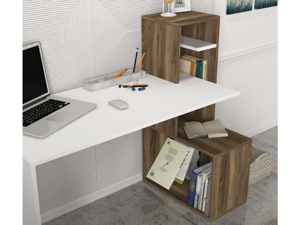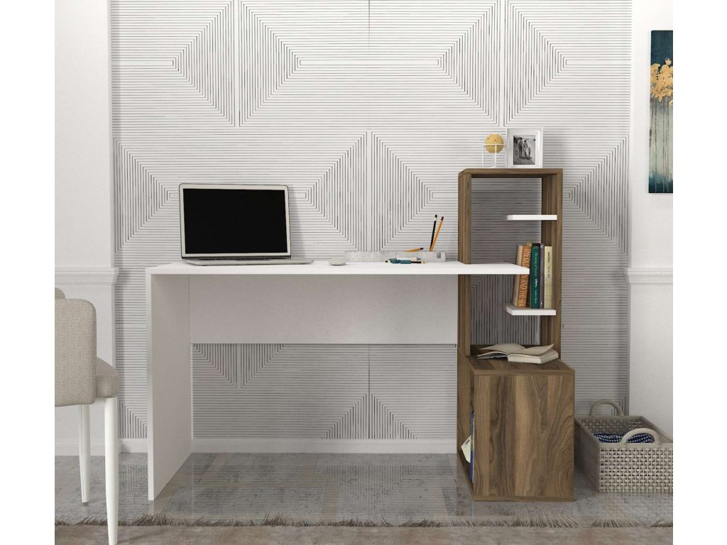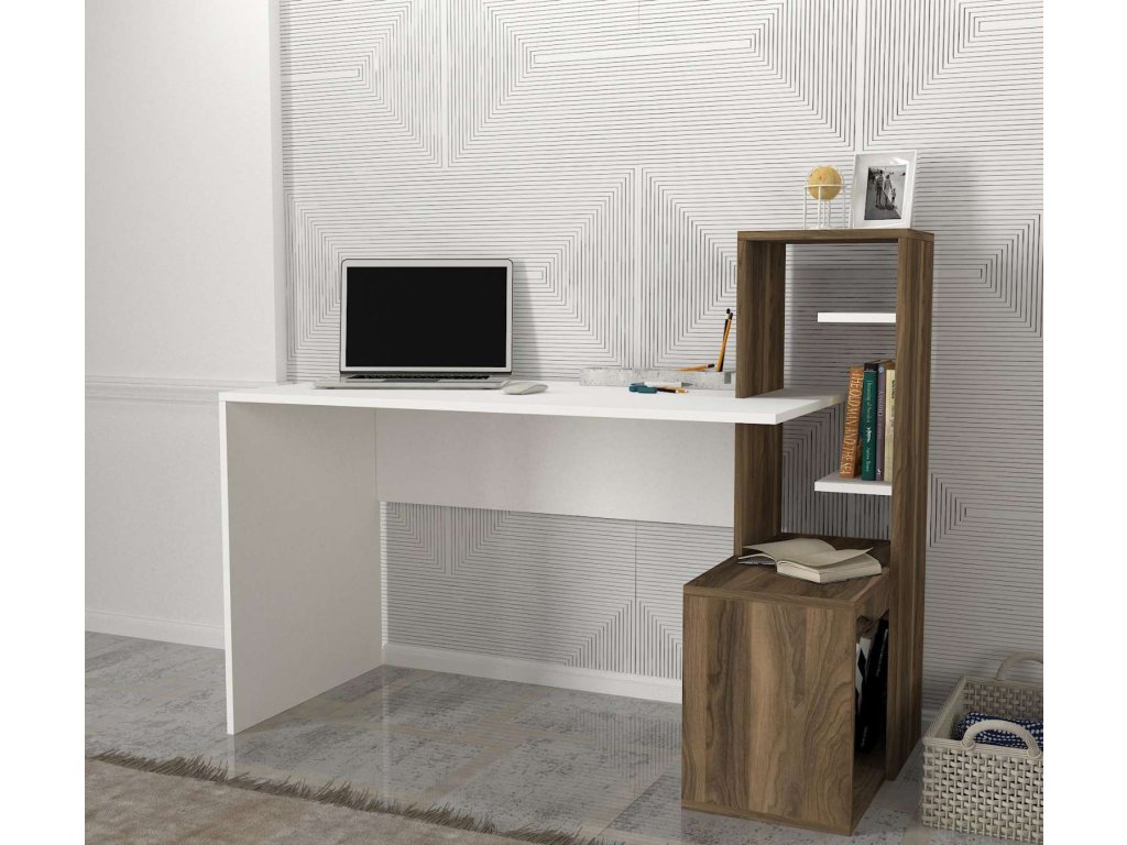 Písací stůl je vyroben z kvalitního LTD materiálu s tloušťkou 18 mm, což zajišťuje jeho pevnost a dlouhou životnost. Elegantní kombinace bílé barvy a ořechového dekoru dodává stolu moderní a stylový vzhled, který se hodí do jakéhokoliv interiéru. Stůl je vybaven praktickým regálkem, který poskytuje dostatek úložného prostoru pro vaše pracovní potřeby a pomůcky.