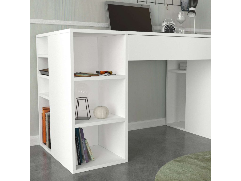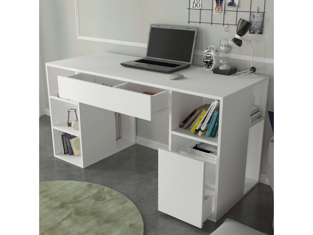 Písací stůl je vyroben z kvalitního LTD materiálu s tloušťkou 18 mm, což zajišťuje jeho pevnost a dlouhou životnost. Elegantní bílá barva dodává stolu moderní a čistý vzhled, který se hodí do jakéhokoliv interiéru. Stůl je vybaven praktickým regálkem a dvěma zásuvkami, které poskytují dostatek úložného prostoru pro všechny vaše pracovní potřeby a pomůcky.