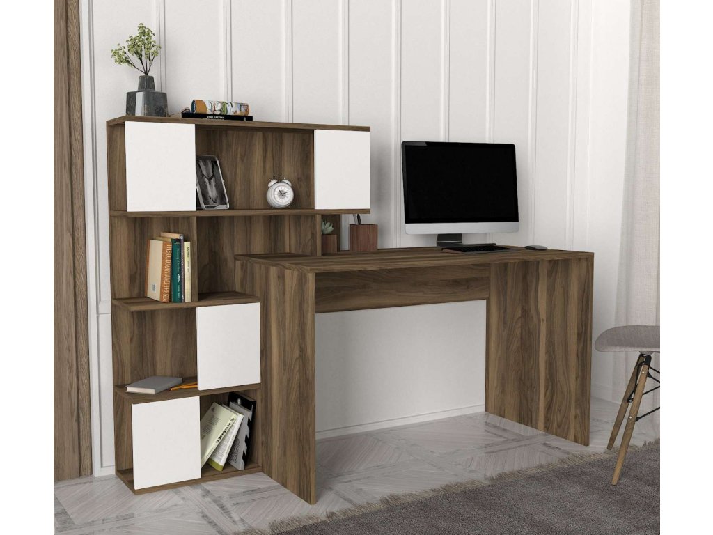 Písací stůl je vyroben z kvalitního LTD materiálu s tloušťkou 18 mm, což zajišťuje jeho pevnost a dlouhou životnost. Elegantní kombinace bílé a ořechové barvy dodává stolu moderní a stylový vzhled, který se hodí do jakéhokoliv interiéru. Stůl je vybaven praktickým regálkem, který poskytuje dostatek úložného prostoru pro vaše pracovní potřeby a pomůcky.