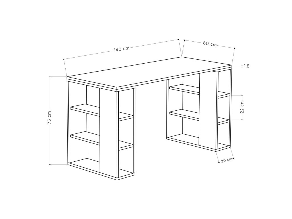 Rozměr: 75 x 140 x 60 cm - perfektně vyvážené rozměry pro pohodlnou práci.