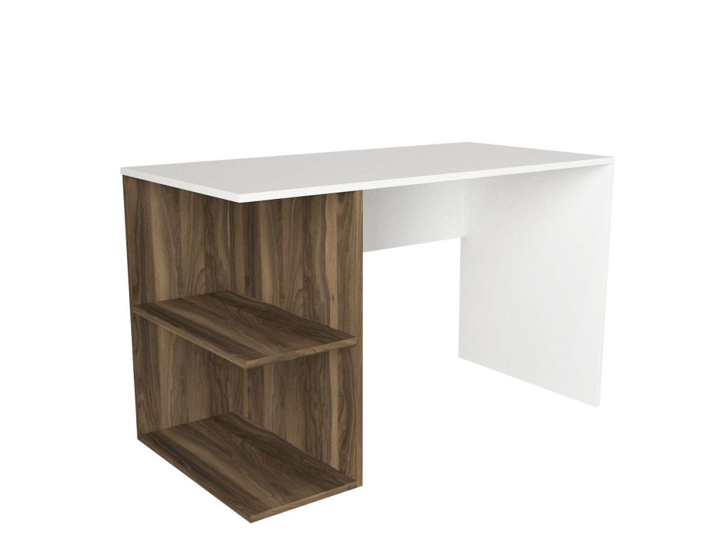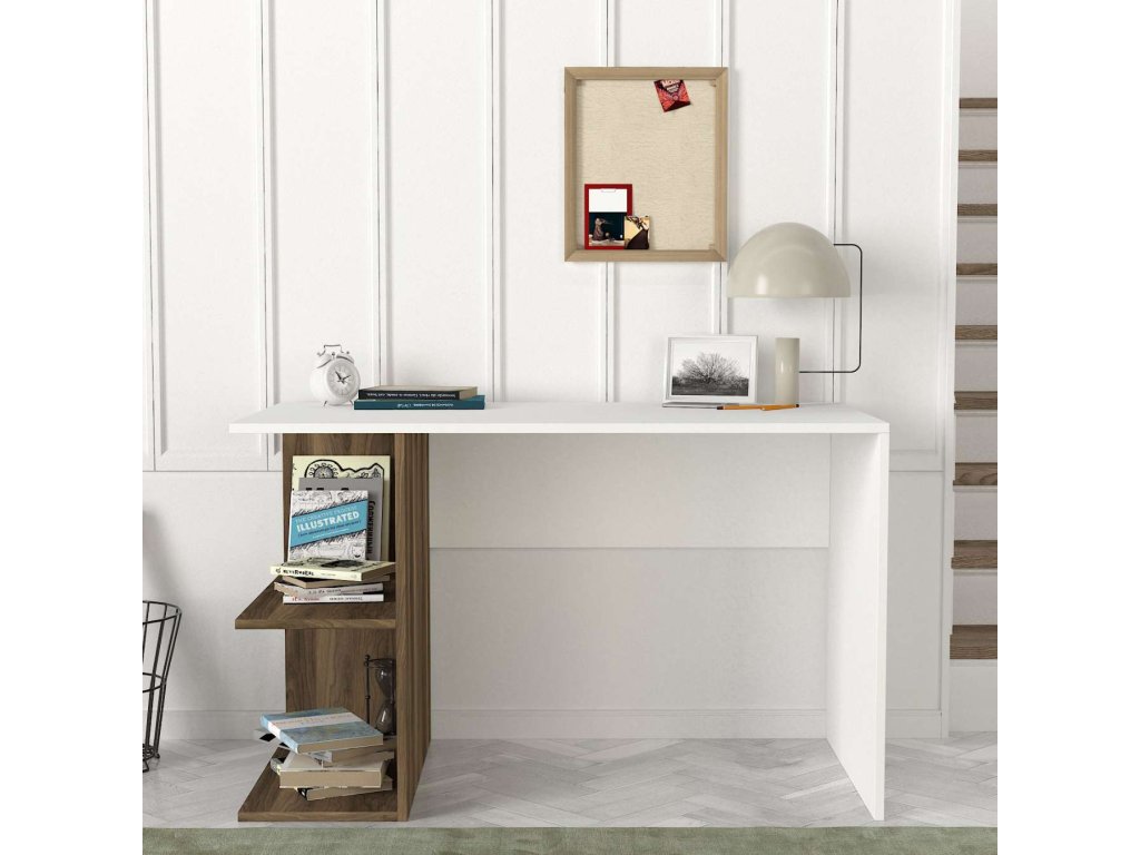Písací stůl je vyroben z kvalitního LTD materiálu s tloušťkou 18 mm, což zajišťuje jeho pevnost a dlouhou životnost. Elegantní kombinace bílé a ořechové barvy dodává stolu moderní a stylový vzhled, který se hodí do jakéhokoliv interiéru. Stůl je vybaven praktickým regálkem, který poskytuje dostatek úložného prostoru pro vaše pracovní potřeby a pomůcky.