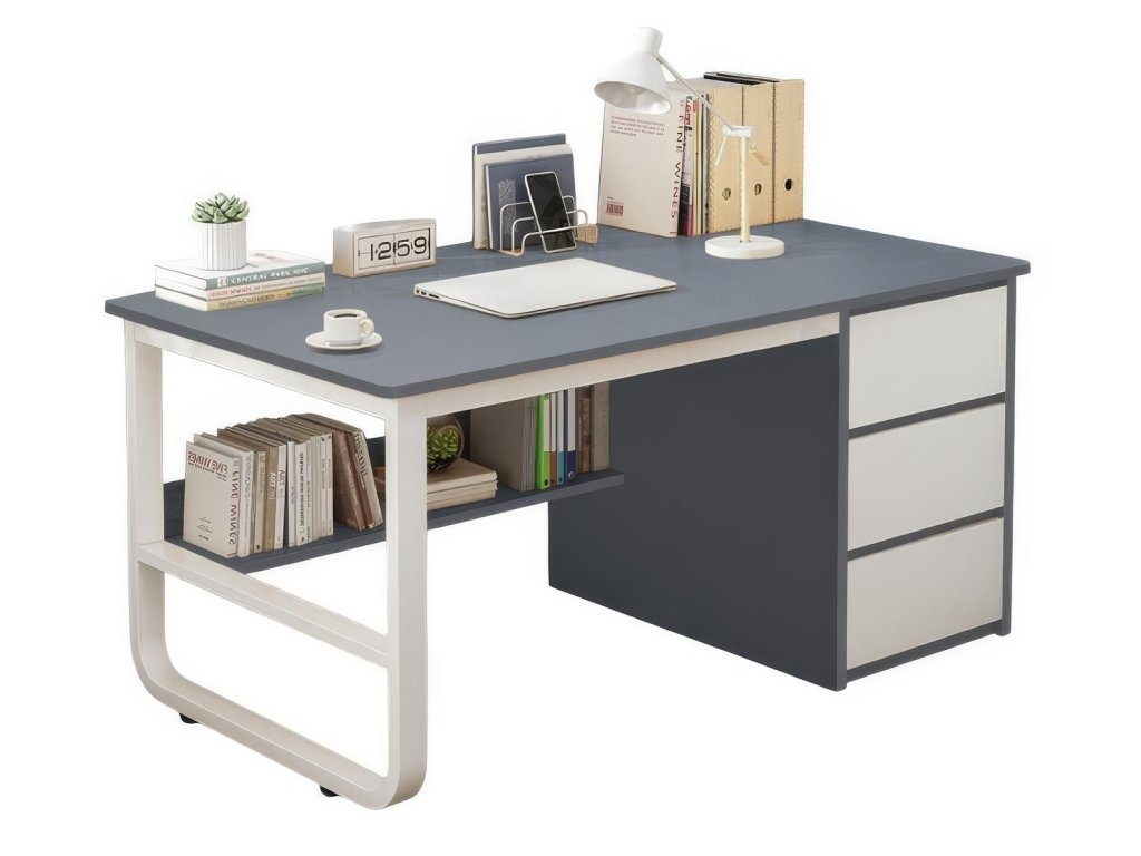 Psací stůl s praktickými šuplíky a jednou policí pod stolem. Police má délku 58 cm a hloubku 15 cm. Stůl nabízí kvalitní zpracování v podobě pevné ocelové konstrukce bílé barvy v kombinaci MDF desky barvy grafit. Zásuvky se nemontují do kolejnic, ale vysouvají se. Rozměr vnitřní části šuplíku je 275x250cm (šxh). Dodáváme v demontovaném stavu.Doplňkové parametry