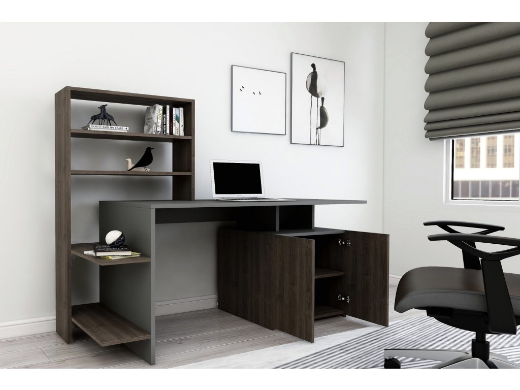 Melis psací stůl s regálem, ořech / antracit