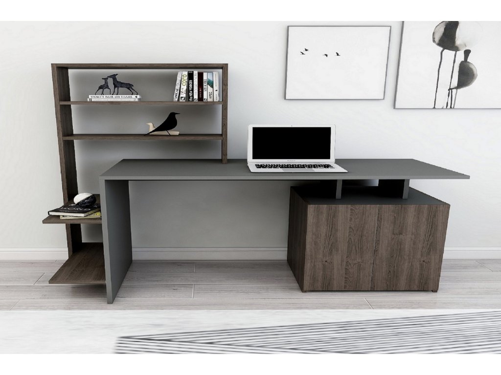 Tento studijní stůl, navržený s ohledem na vaše potřeby, je nejen praktický, ale i esteticky příjemný. Kombinace barvy ořechu a antracit dodá každé studovně nádech sofistikovanosti a vytvoří uklidňující a příznivé prostředí pro učení.