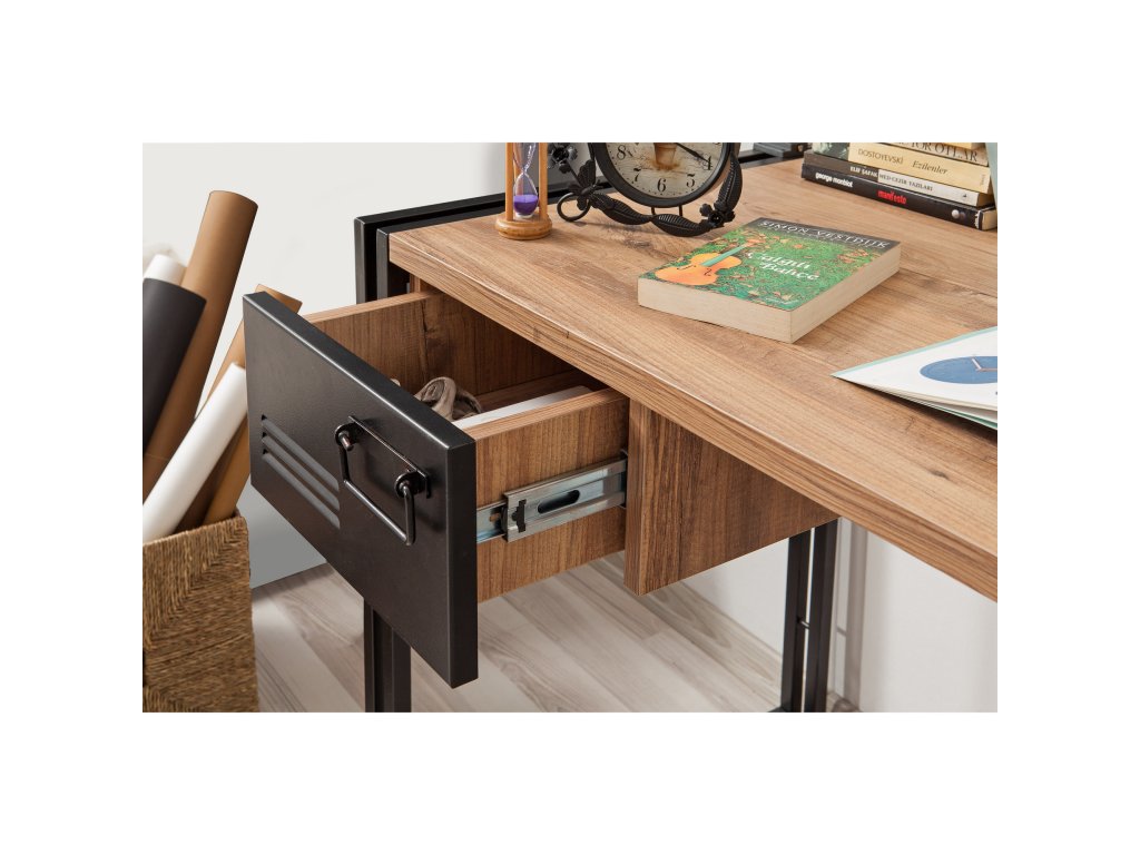 Psací stůl nabízí ideální kombinaci moderního industriálního stylu a funkčnosti. S elegantním dekorem borovice a černými kovovými detaily se skvěle hodí do dětského pokoje, kanceláře i pracovny.