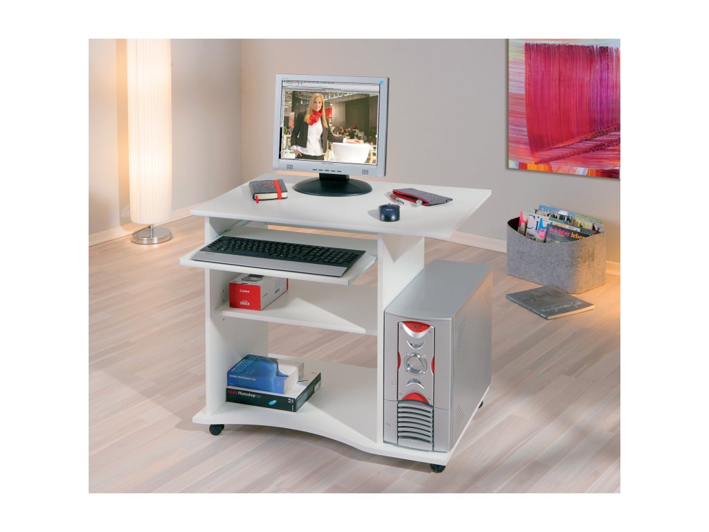 barevné provedení bílá výsuv na klávesnici s kovovými pojezdy jedna variabilní police, pojízdný na kolečkách (bez dekorací)Doplňkové parametry
