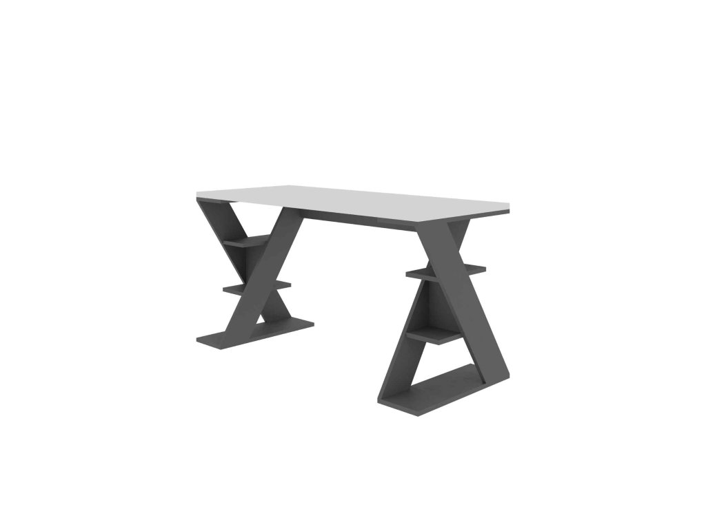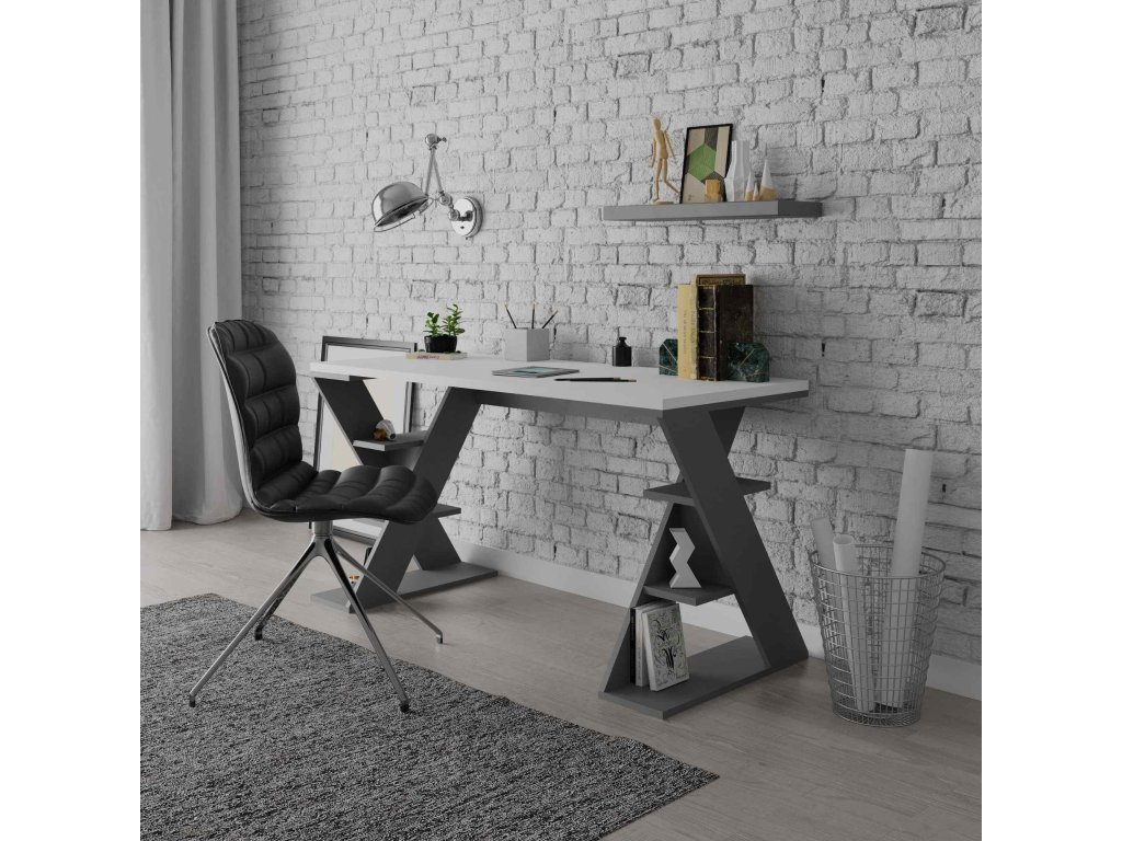 Psací stůl představuje dokonalou kombinaci bílé a antracitové barvy, která oživí jakýkoli pracovní prostor. Svým elegantním a zároveň funkčním designem se stane středobodem vaší kanceláře či pracovny.