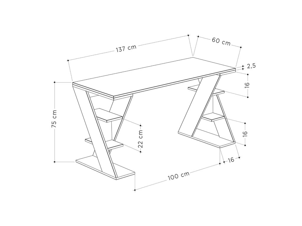 Rozměr: 75 x 137 x 60 cm - ideální velikost pro komfortní práci bez zbytečného zabírání prostoru.
