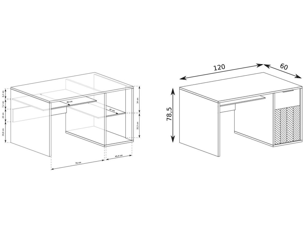 Pracovní stůl je vyroben z kvalitních LTD desek. Jsou nenáročné na údržbu. Hrany jsou chráněny ABS hranou. Zadní část nábytku je z HDF desky.