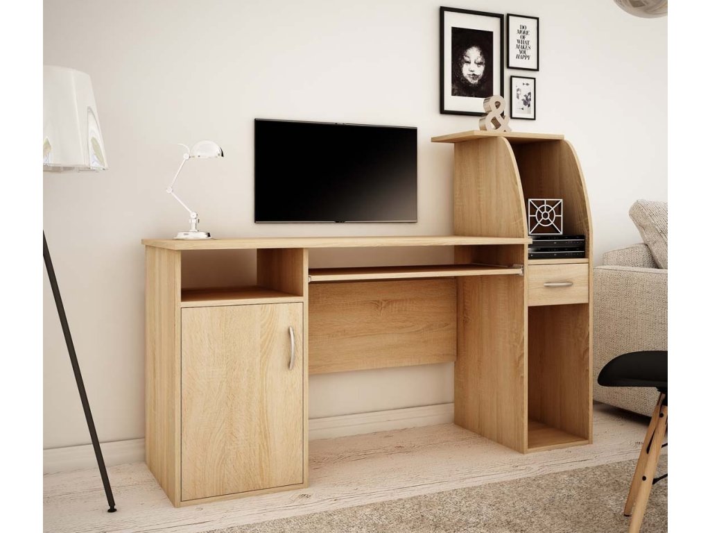 PC stolek s dvířky, zásuvkou a policemi, který je vyrobený z kvalitního lamina. Stolek obsahuje výsuvnou poličku pro klávesnici. výška pracovní desky je 74 cm, šířka má 120 cm. Lamino je odolné proti poškrábání, poškození, vlhkosti a vysokým teplotám. Stolek je v barevném provedení dub sonoma. Dodáváme v demontovaném stavu.Doplňkové parametry