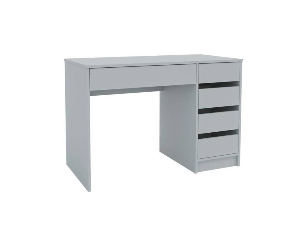 Elegantní pracovní stůl. Je mimořádně praktický díky pěti zásuvkám na teleskopických kolejnicích. je vyrobený z kvalitní laminátové desky v barevném provedení činčila grey. Jde o pravou variantu, lze zakoupit i opačnou verzi. Dodáváme v demontovaném stavu.Doplňkové parametry