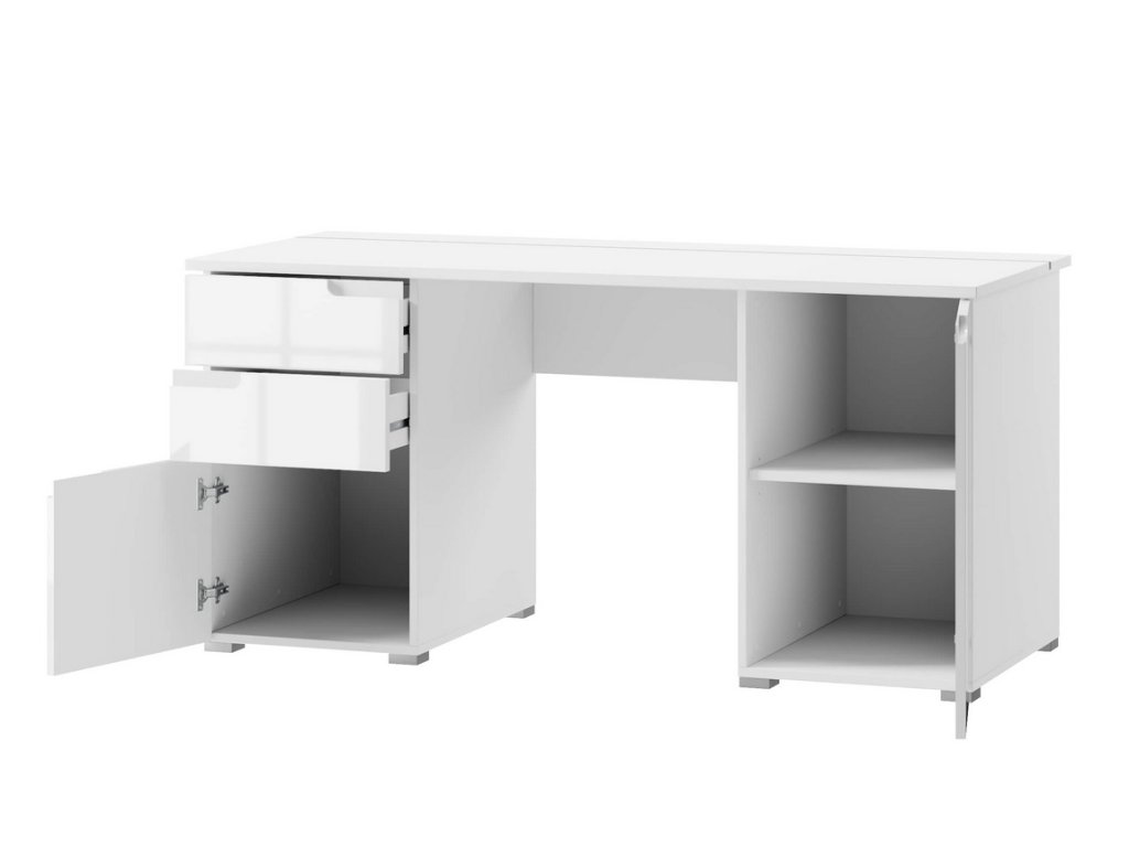 Psací stůl dvoudveřový se dvěma zásuvkami ze sektorové řady. Jednoduchost a elegance bílé barvy této řady umožňuje kombinaci s dalšími barvami vašeho interiéru. Korpus je vyroben z kvalitní LTD desky v barvě bílá mat. Dvířka jsou vyrobeny z MDF desky v barvě bílá lesk. Úchyty jsou vyfrézovány do čelní desky. Široká nabídka komponentů této sektorové řady umožňuje sestavit si nábytek nejen do jídelny či předsíně, ale také do ložnice, obývacího nebo studentského pokoje dle vlastních představ. Dodáváme v demontovaném stavu.Doplňkové parametry