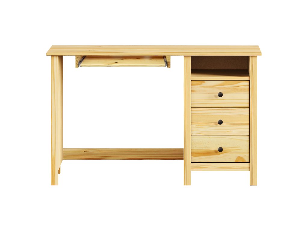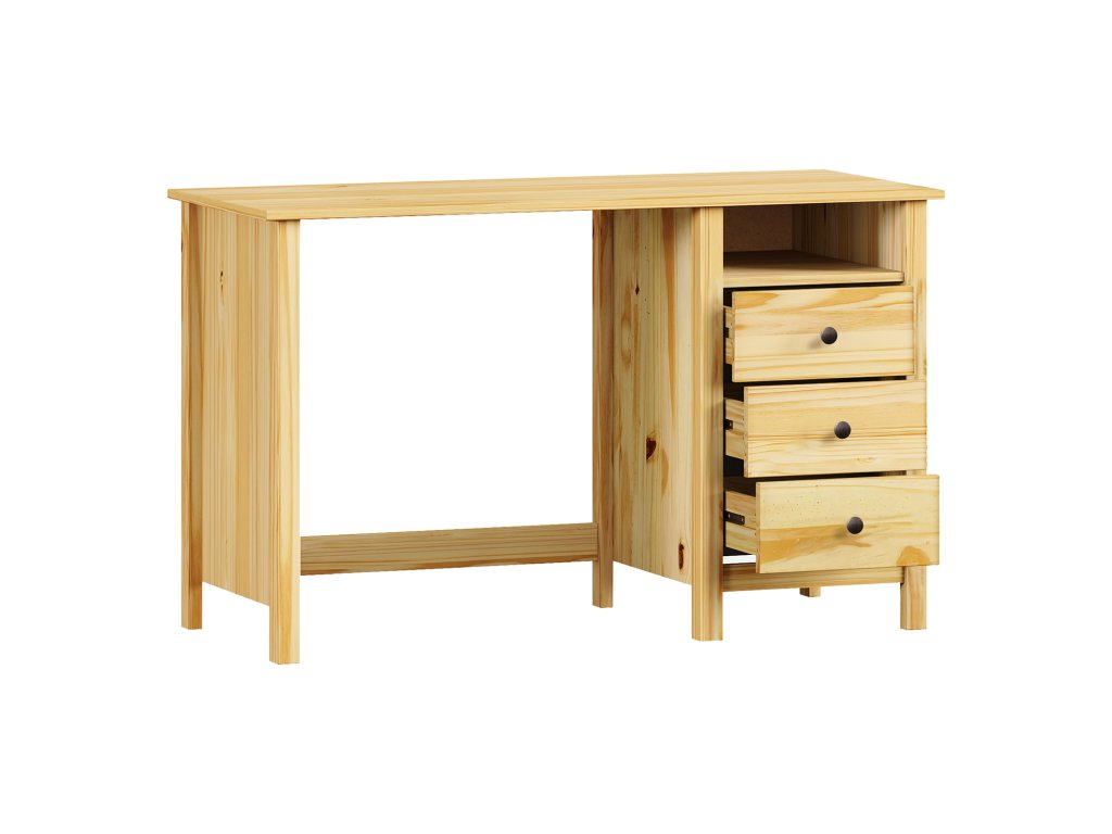 materiál masiv borovice, lakované provedení kovové úchytky v barevném provedení černěná mosaz 3 zásuvky s kovovými pojezdy, 1 police výsuv není součástí dodávky ke stolu je možno dokoupit výsuvnou desku na klávesnici 8840Doplňkové parametry