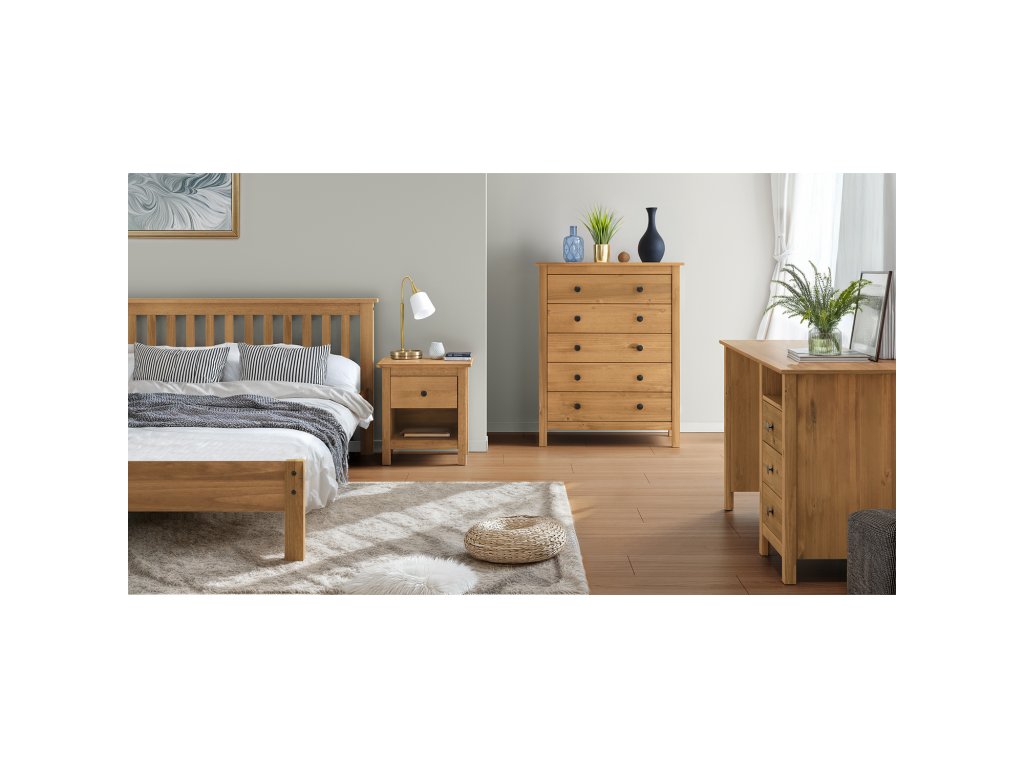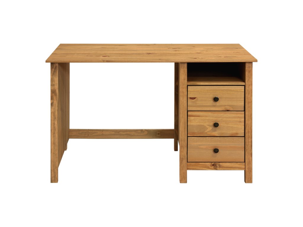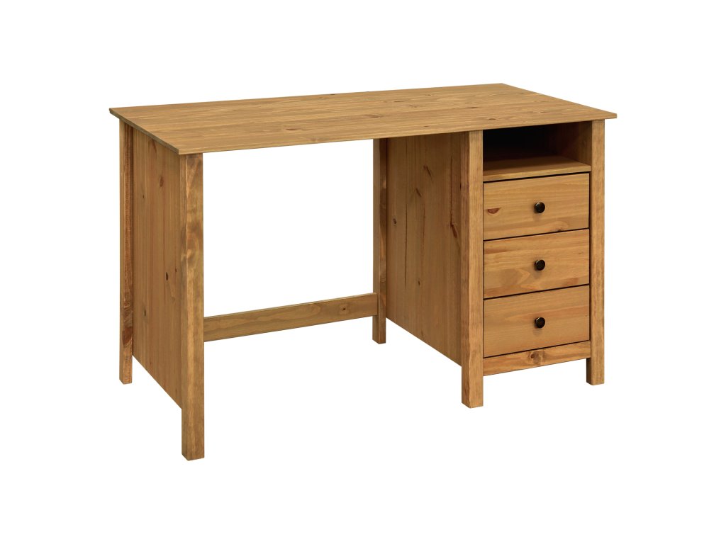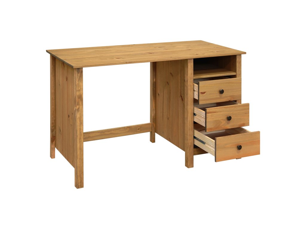 materiál masiv borovice voskovaná v medovém odstínu kovové úchytky v barevném provedení černěná mosaz 3 zásuvky s kovovými pojezdy, 1 policeDoplňkové parametry