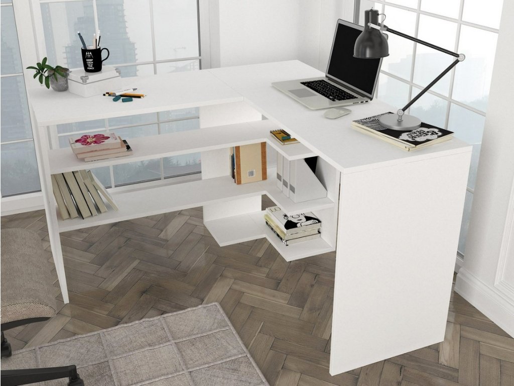 Rohový pracovní stůl je vyroben z kvalitního lamina o tl.18 mm hraněné PVC páskou, odolného proti poškrábání v barvě matná bílá. Dodáváme v demontovaném stavu.Doplňkové parametry