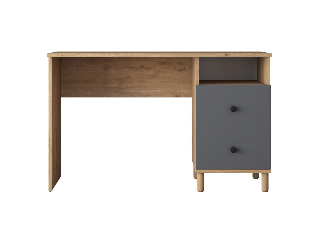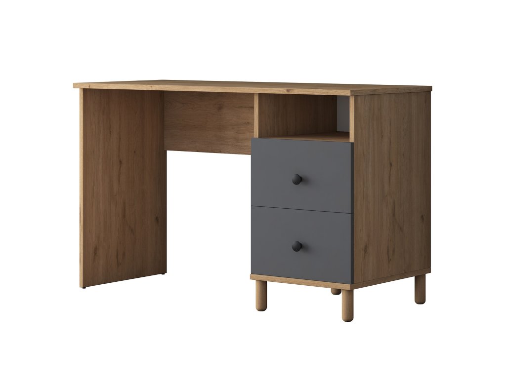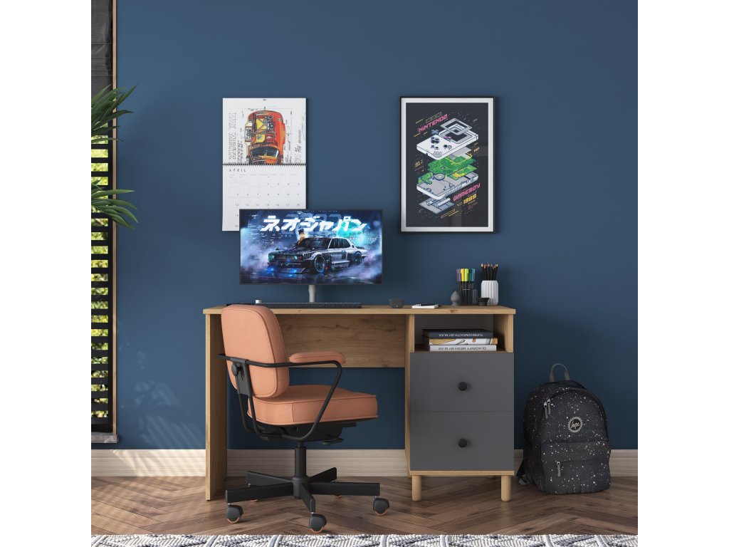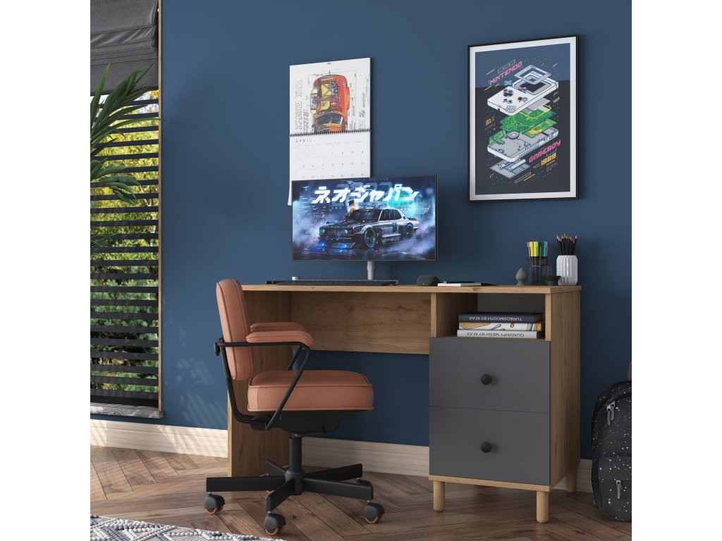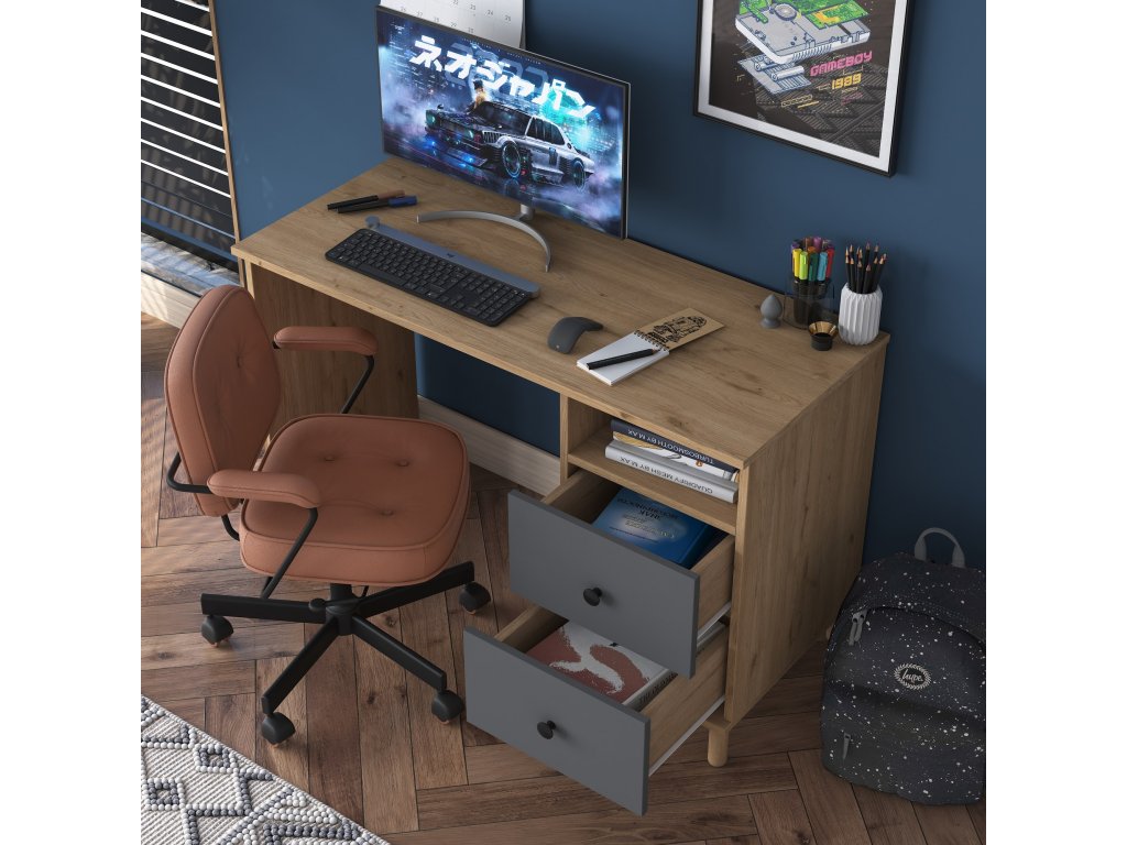 Psací stůl je ideálním řešením pro pracovní i studijní prostředí. Kombinace dekoru ořechu a antracitu přináší moderní a elegantní vzhled, který skvěle doplní interiér dětského pokoje, kanceláře nebo pracovny. Stůl nabízí praktické úložné prostory a kompaktní rozměry, které šetří místo.