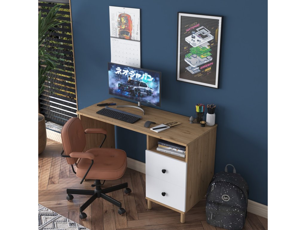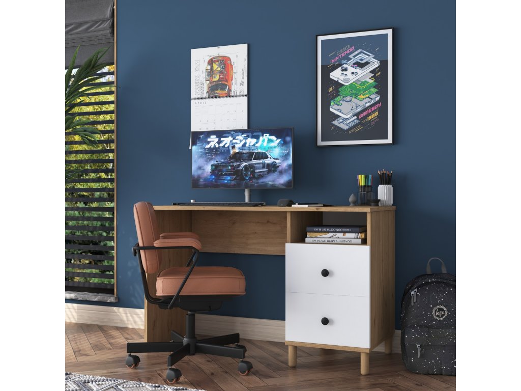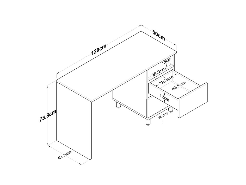 Psací stůl je navržen tak, aby splňoval všechny potřeby moderní domácnosti nebo kanceláře. Jeho praktické uspořádání a elegantní vzhled z něj činí ideální volbu pro jakýkoliv prostor.