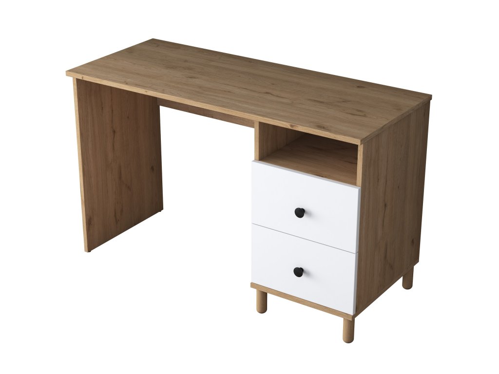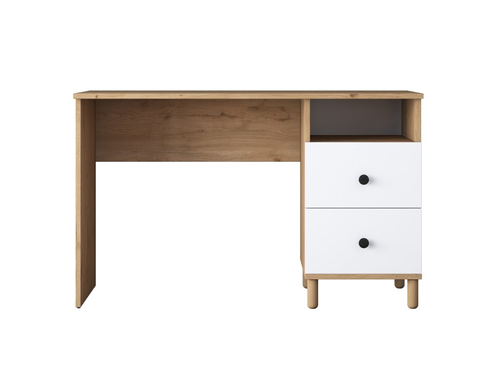 Psací stůl nabízí moderní design a praktické uspořádání úložného prostoru. Díky kombinaci bílé barvy a dekoru ořechu přináší do vašeho interiéru svěžest a eleganci. Tento stůl je ideální pro dětské pokoje, kanceláře nebo pracovny a poskytuje dostatek prostoru pro práci či studium.
