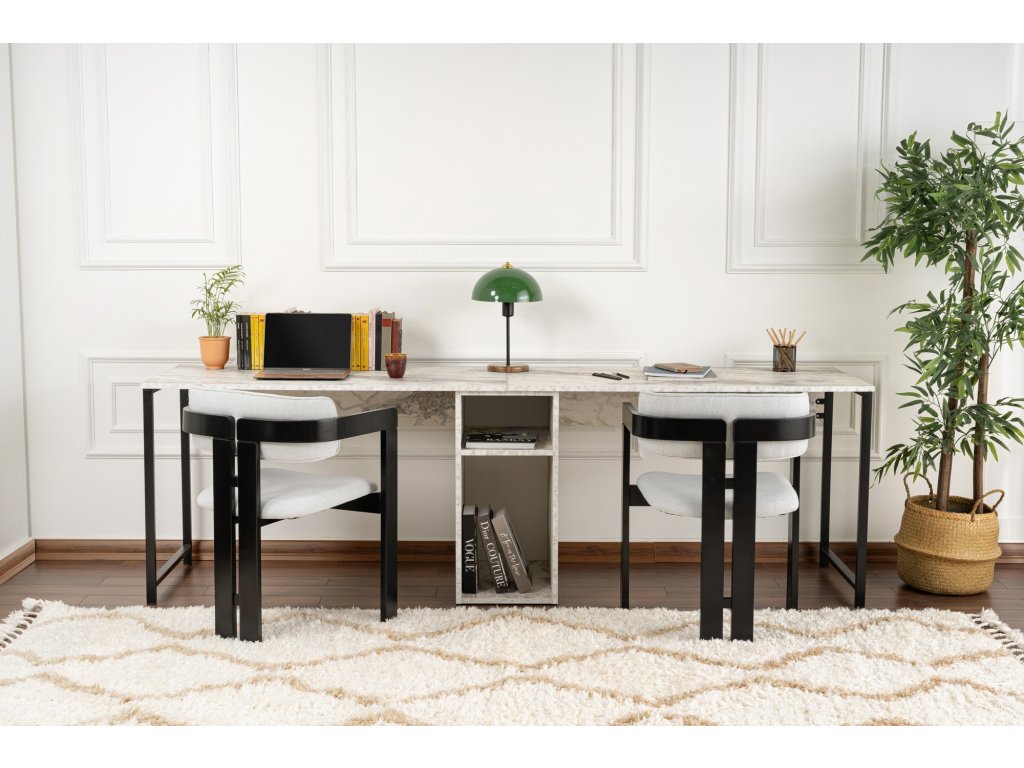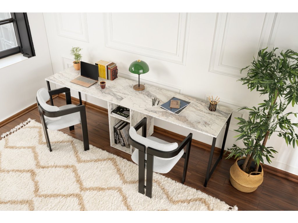 Twin Study Desk dvojitý psací stůl, mramor freesia / černá