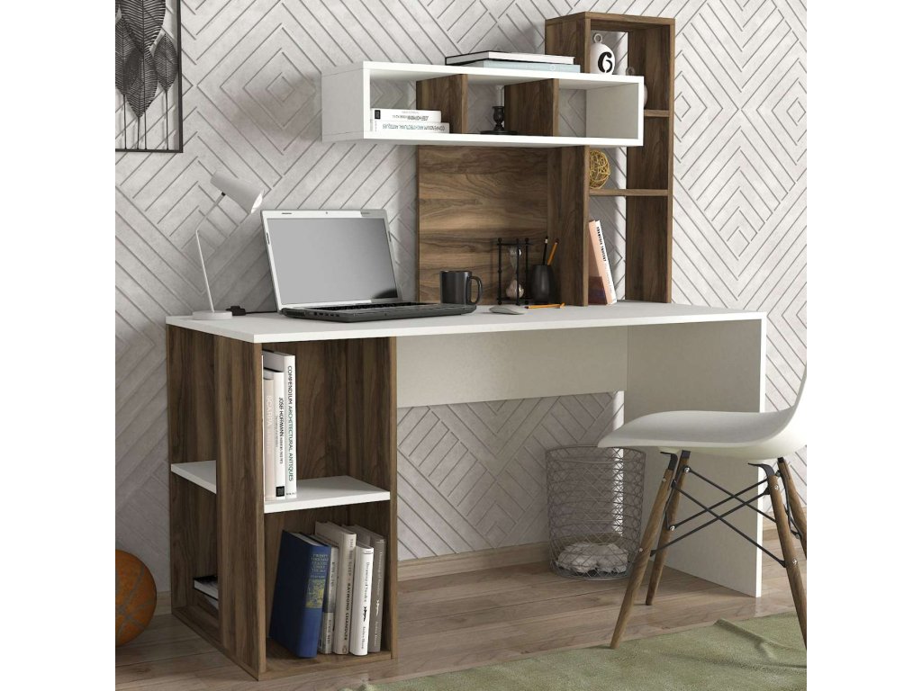 Písací stůl je vyroben z kvalitního LTD materiálu s tloušťkou 18 mm, což zajišťuje jeho pevnost a dlouhou životnost. Elegantní kombinace bílé a ořechové barvy dodává stolu moderní a stylový vzhled, který se hodí do jakéhokoliv interiéru. Stůl je vybaven praktickým regálkem a nástavcem, které poskytují dostatek úložného prostoru pro vaše pracovní potřeby a pomůcky.