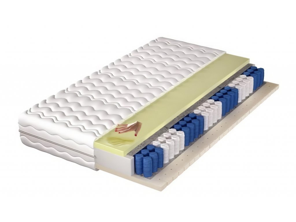 Pružinová matrace 120x200 cm v pratelném snímatelném potahu. Jádro matrace je charakteristické hustě uspořádanými taštičkovými pružinami v množství 262 ks/m2 a 7 zónami tvrdosti, které zajišťují dokonalou oporu těla a komfort odpočinku. Za zmínku stojí funkce taštičkových pružin, které pracují odděleně a reagují jen v místě tlaku. Pokud si tedy na matraci lehnete, dojde ke stlačení pouze těch pružin, na které se vyvíjí tlak. Matrace je z jedné strany potažena 3 cm silnou termoelastickou pěnou a z druhé strany 3 cm vrstvou latexu, což umožňuje výběr užitkové strany vzhledem k rozdílům ve vlastnostech materiálů. - Termoelastická pěna (visco) při kontaktu s tělesným teplem měkne, nevytváří protitlak a pružně se přizpůsobí anatomii lidského těla. Díky tzv. efektu pomalého vracení (líná pěna) rovnoměrně rozkládá tlak matrace na lidské tělo, což má pozitivní vliv na krevní oběh, zlepšuje kvalitu spánku a zmírňuje bolesti zad. - Latex má skvělé ortopedické a fyziologické vlastnosti. Jeho antibakteriální vlastnosti zabraňují šíření bakterií, plísní a roztočů a také neabsorbuje prach. Doporučuje se tedy pro zákazníky s respiračními obtížemi. Matrace je hypoalergenní a použití bavlny v potahu matrace podporuje cirkulaci vzduchu a poskytuje dobrou tepelnou izolaci. Je odolná vůči různým druhům tlaku, deformaci a promáčknutí a poskytuje dobrou ventilaci, což ocení lidé s nadměrným pocením. Obě strany matrace mají označení tvrdosti H3 - středně tvrdá. Výška matrace je +/- 20 cm. Barva pěn se může lišit od vyobrazení.Doplňkové parametry
