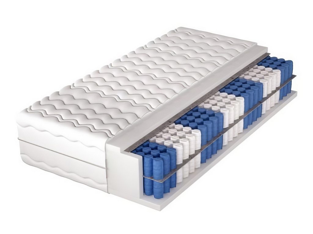Pružinová matrace 80x200 cm v pratelném snímatelném potahu. Jádro matrace je charakteristické dvojitými hustě uspořádanými taštičkovými pružinami v množství 262 ks/m2 a 7 zónami tvrdosti, které zajišťují dokonalou oporu těla a komfort odpočinku. Za zmínku stojí funkce taštičkových pružin, které pracují odděleně a reagují jen v místě tlaku. Pokud si tedy na matraci lehnete, dojde ke stlačení pouze těch pružin, na které se vyvíjí tlak. Matrace je z obou stran potažena PUR pěnou T25 o síle 2 cm. Matrace je hypoalergenní a použití bavlny v potahu matrace podporuje cirkulaci vzduchu a poskytuje dobrou tepelnou izolaci. Je odolná vůči různým druhům tlaku, deformaci a promáčknutí a poskytuje dobrou ventilaci, což ocení lidé s nadměrným pocením. Matrace má označení tvrdosti H3 - středně tvrdá. Výška matrace je +/- 31 cm. Barva pěn se může lišit od vyobrazení.