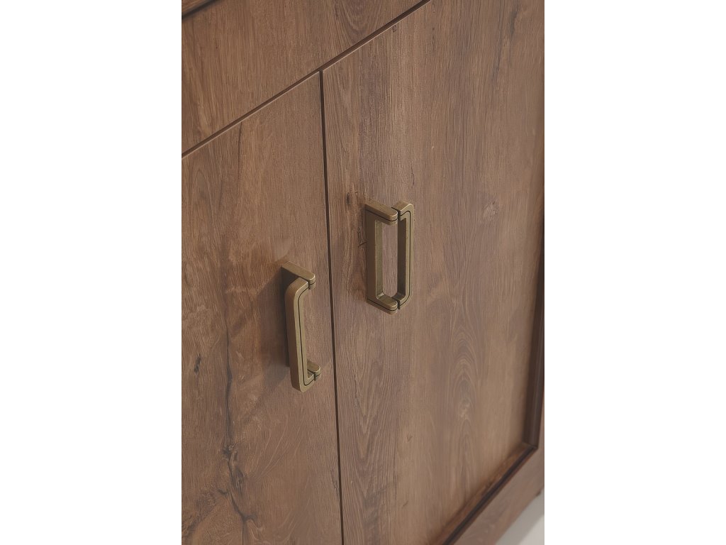Rohová šatní skříň pravá ze sektorové řady. Vlevo se nachází police a volný prostor se šatní tyčí, vpravo jsou 4 police. Možnost objednání opačné verze. Systém je exkluzivní kolekce navržena v duchu vintage. Celá řada se vyznačuje elegancí a jednoduchými tvary, které zaručují plné využití prostoru. Nábytek je vyroben z velmi kvalitní LTD o tloušťce 16 mm, horní deska zesílena na 32 mm, lišty na čele nábytku jsou MDF, hrany ABS. Tvrzené sklo ve vitrínách je jemně zdobené. Elegantní úchyty jsou z kovu. Barevné provedení dub lefkas. Dodáváme v demontovaném stavu.Doplňkové parametry