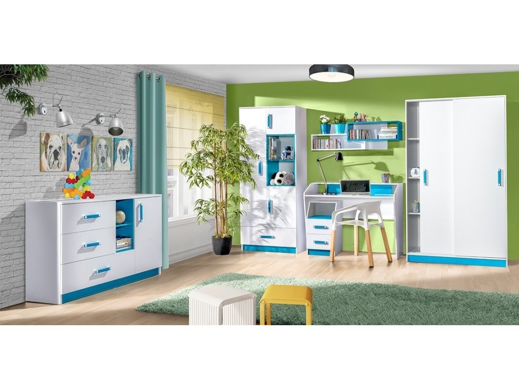 Kombinovaná skříň úzká TRAFICO 4 bílá/tyrkys