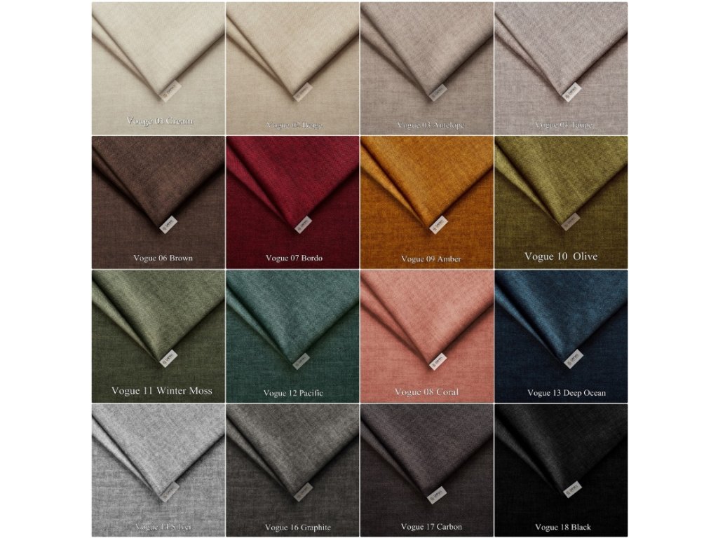 Celoučalouněný design umožňuje umístění soupravy jak do rohu, tak i do středu místnosti. Sedačka je čalouněná v látce Vogue 09.