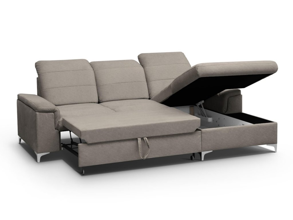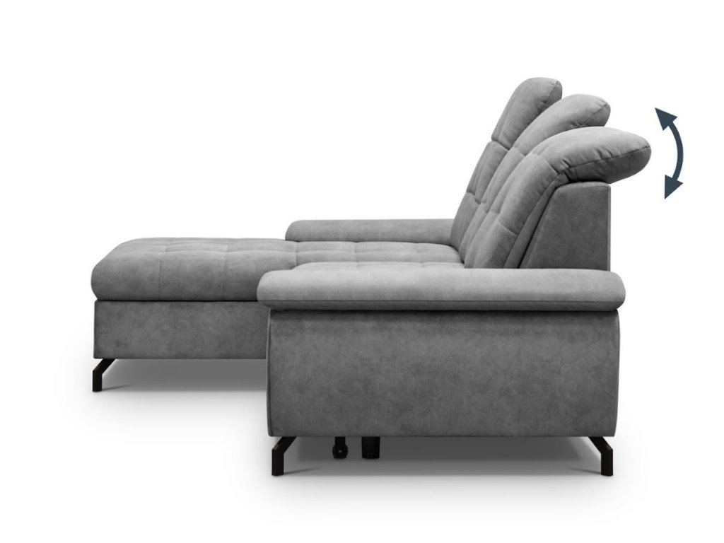 Moderní pohodlná rohová sedací souprava Bergamo Mini, která už na první pohled pobízí k odpočinku. Její předností je hluboký sedák a pohodlné opěradlo se třemi vícenásobně nastavitelnými opěrkami hlavy ,které zaručují pohodlí. Výplň sedáku vlnité pružiny a pěna T 30. Sedačka je velmi praktická je celočalouněná má úložný prostor a je rozkládací . Sedací souprava je vyrobená v potahové látce Zetta.