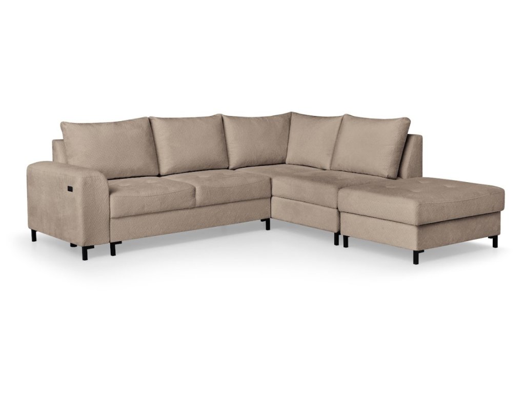 Moderní rohová sedací souprava Brando, která nabízí maximální pohodlí a funkčnost. Díky HR pěně a vlnové pružině poskytuje komfortní sezení i ležení. Pomocí rozkládacího systému PUMA ji snadno přeměníte na prostorné lůžko. Součástí jsou dva úložné prostory , čalouněná zadní část, USB vstup na boku a praktické propojení rohu s taburetem se systémem „krokodýl“. Silikonová výplň polštářů s kuličkami zaručuje měkkost a tvarovou stálost. Ozdobné prošívání, černé kovové nohy a odolná látka vhodná pro domácí mazlíčky podtrhují moderní vzhled i praktičnost. Sedací souprava je čalouněná v látce Egon.