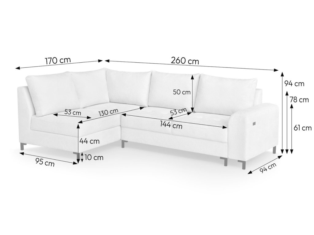Moderní rohová sedací souprava Brando, která nabízí maximální pohodlí a funkčnost. Díky HR pěně a vlnové pružině poskytuje komfortní sezení i ležení. Pomocí rozkládacího systému PUMA ji snadno přeměníte na prostorné lůžko. Součástí jsou dva úložné prostory , čalouněná zadní část, USB vstup na boku a praktické propojení rohu s taburetem se systémem „krokodýl“. Silikonová výplň polštářů s kuličkami zaručuje měkkost a tvarovou stálost. Ozdobné prošívání, černé kovové nohy a odolná látka vhodná pro domácí mazlíčky podtrhují moderní vzhled i praktičnost. Sedací souprava je čalouněná v látce Egon.