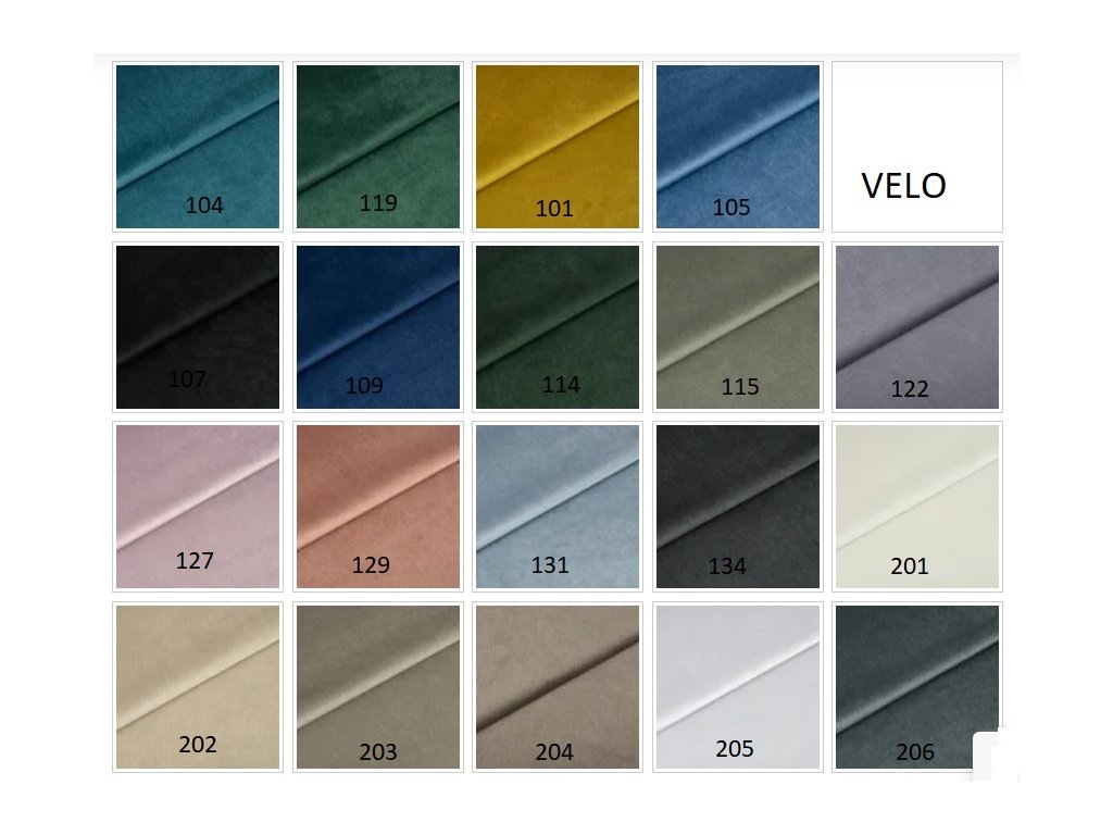 Velo - je látka příjemná na dotek, odolná proti absorpci tekutin a proti každodennímu používání.