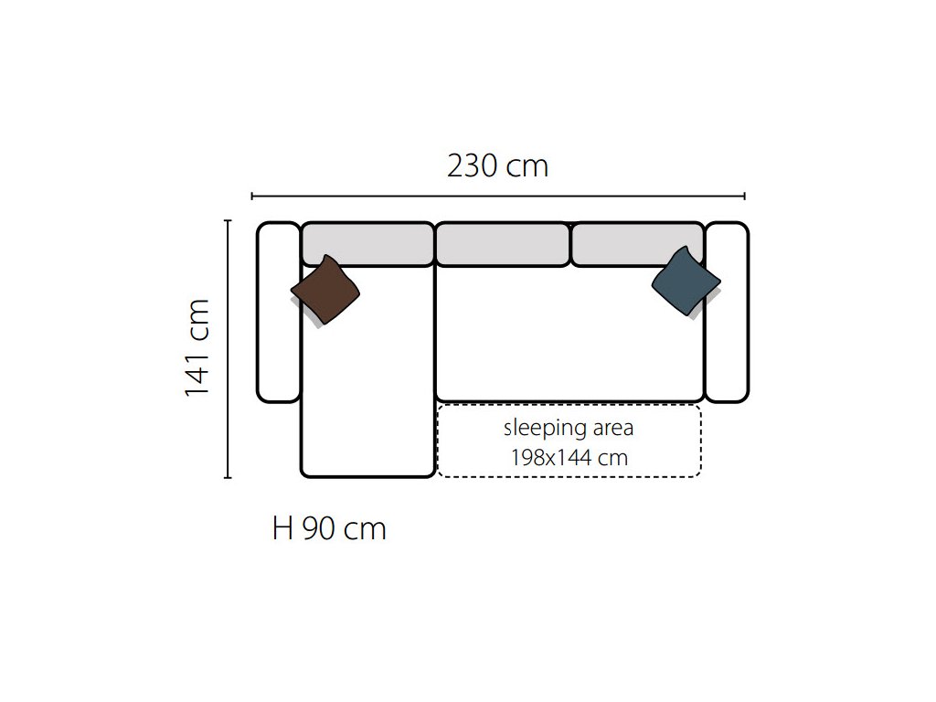 Praktická celo-čalouněná rohová sedačka. Netradiční a velmi moderní vzhled. Sedačka obsahuje úložný prostor a prostor na příležitostní spaní. Po rozložení je spací plocha 198 x 144 cm. Pohodlné sezení zaručují bonellové pružiny s PUR pěnou. Elegantní dřevěné opěrky. Možnost zakoupení i pohovky KOMO. Postup při objednání: Nejprve si zvolte umístění rohu, zda si přejete roh na pravé nebo levé straně, poté potah u korpusu, zad, sedací části, část boků a vrchní část polštářů ( viz Potah ) a následně v rolovacím oknu si zvolte potah u spodní části polštářů, spodní část boků a dekoračního pásu.Doplňkové parametry
