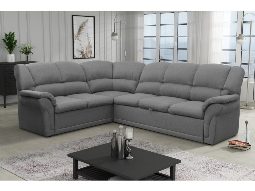 Praktická rohová sedačka celo-čalouněná. Elegantní a velmi moderní vzhled. Sedačka obsahuje úložný prostor a prostor na příležitostní spaní. Po rozložení je spací plocha 205 x 120 cm. Rozklad je snadný, vysune se matrace do přední části. Pohodlné sezení zaručují vlnovcové pružiny spolu s PUR pěnou ( T-30 ). Sedačka nabízí široký výběr potahových látek. Je třeba si vybrat, zda si přejete roh nalevo nebo napravo. Výška sedu je 45 cm, hloubka sedu 50 cm.Doplňkové parametry