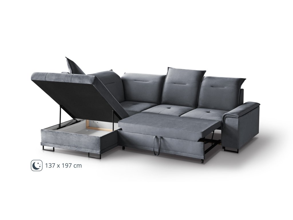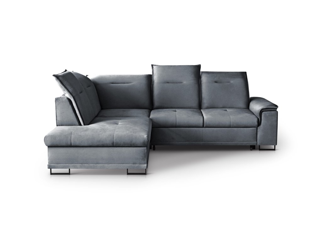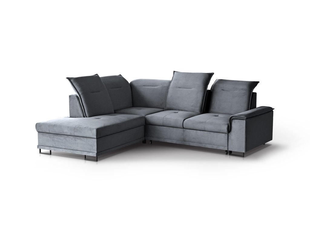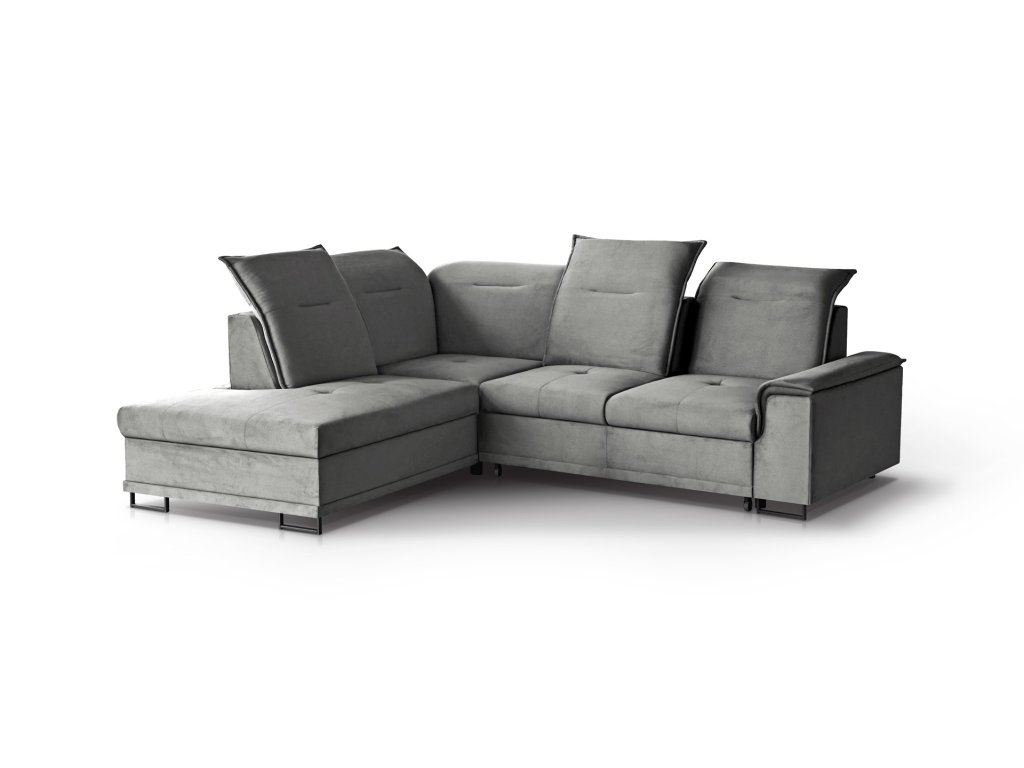 Moderní rohová sedací souprava Bruno, která už na první pohled pobízí k odpočinku. Její předností je hluboký sedák a pohodlné opěradlo s polohovatelnými záhlavci ,které zaručují pohodlí. Sedák a opěradlo má charakteristické dekorativní prošívání. Sedačka má spací funkci a praktický úložný prostor .Vynikající kvalita a péče o nejmenší detaily činí rohovou sedačku nejen pohodlnou, ale především velmi luxusním kouskem.